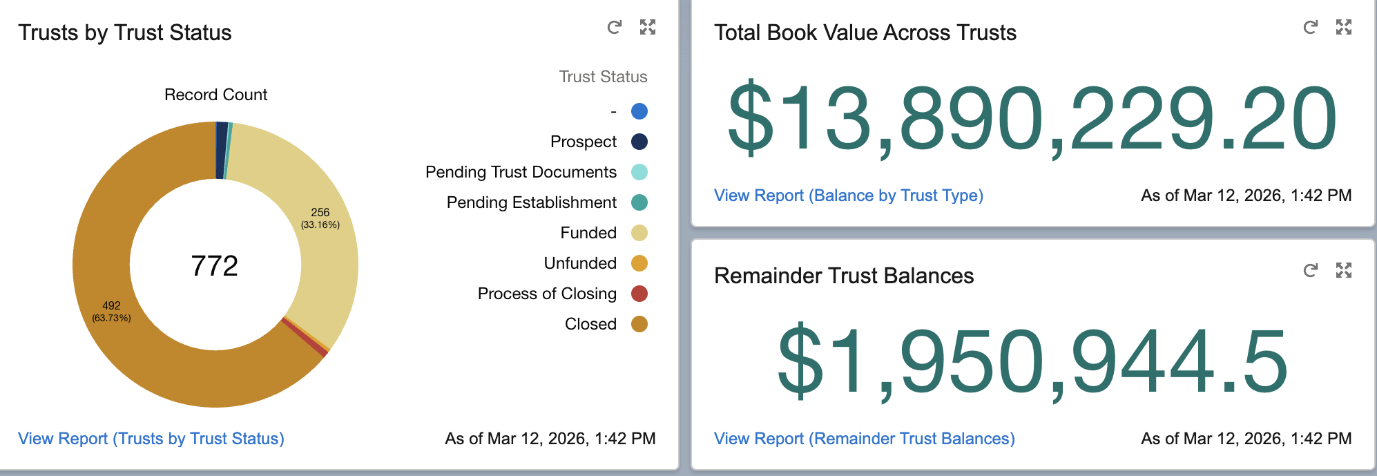 Bring your trust data to life with interactive Salesforce dashboards built for the unique needs of special needs trust administration.